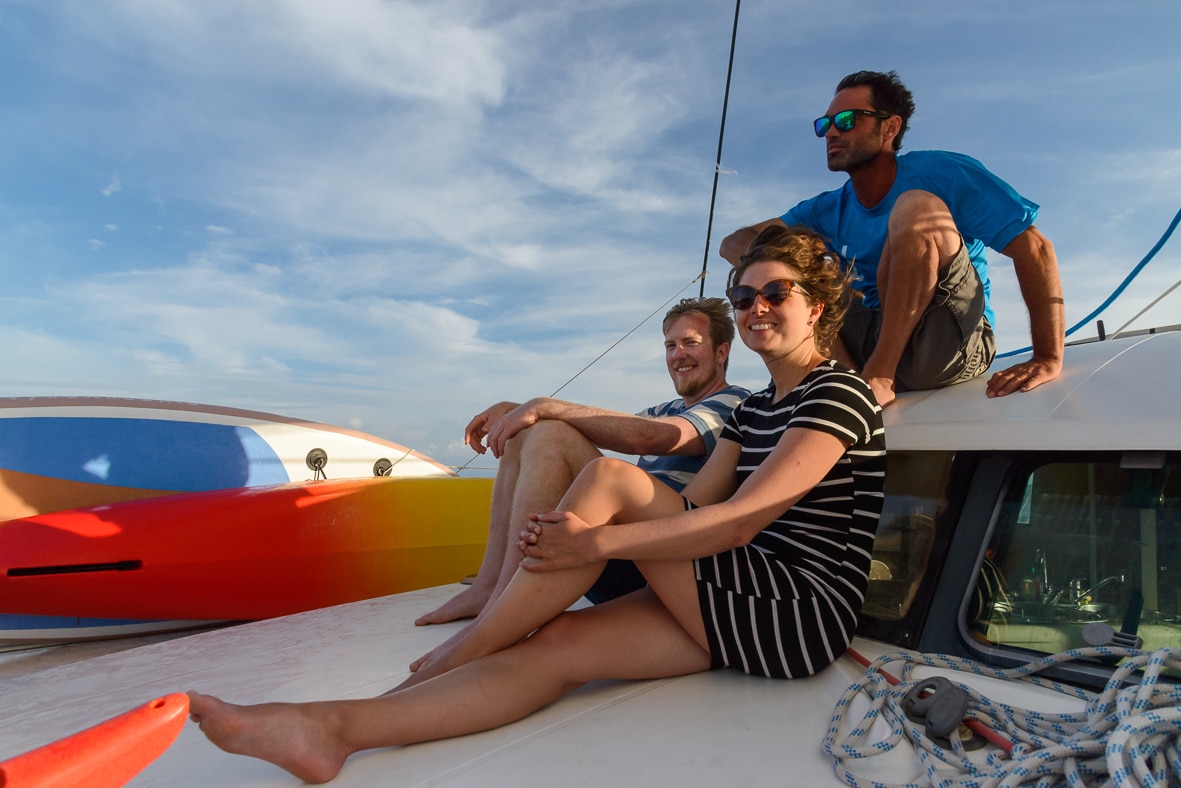 – L’hébergement en cabine double sur un catamaran pendant 6 nuits avec l’assistance d’un skipper diplomé.
